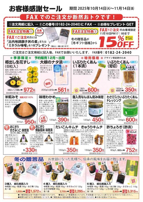 10月14日より、FAXでのご注文が大変お得なお客様感謝セール始まります