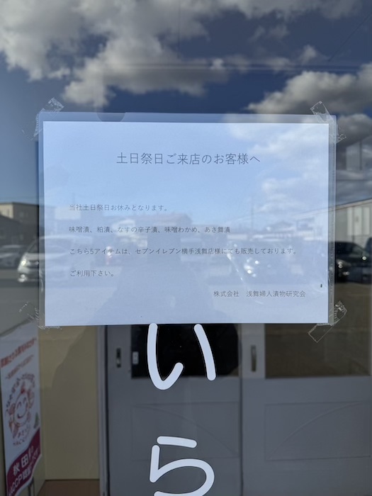 工房側のセブンイレブン横手浅舞店様で、味噌漬、粕漬、茄子の辛子漬、味噌わかめ、あさ舞漬販売始めました